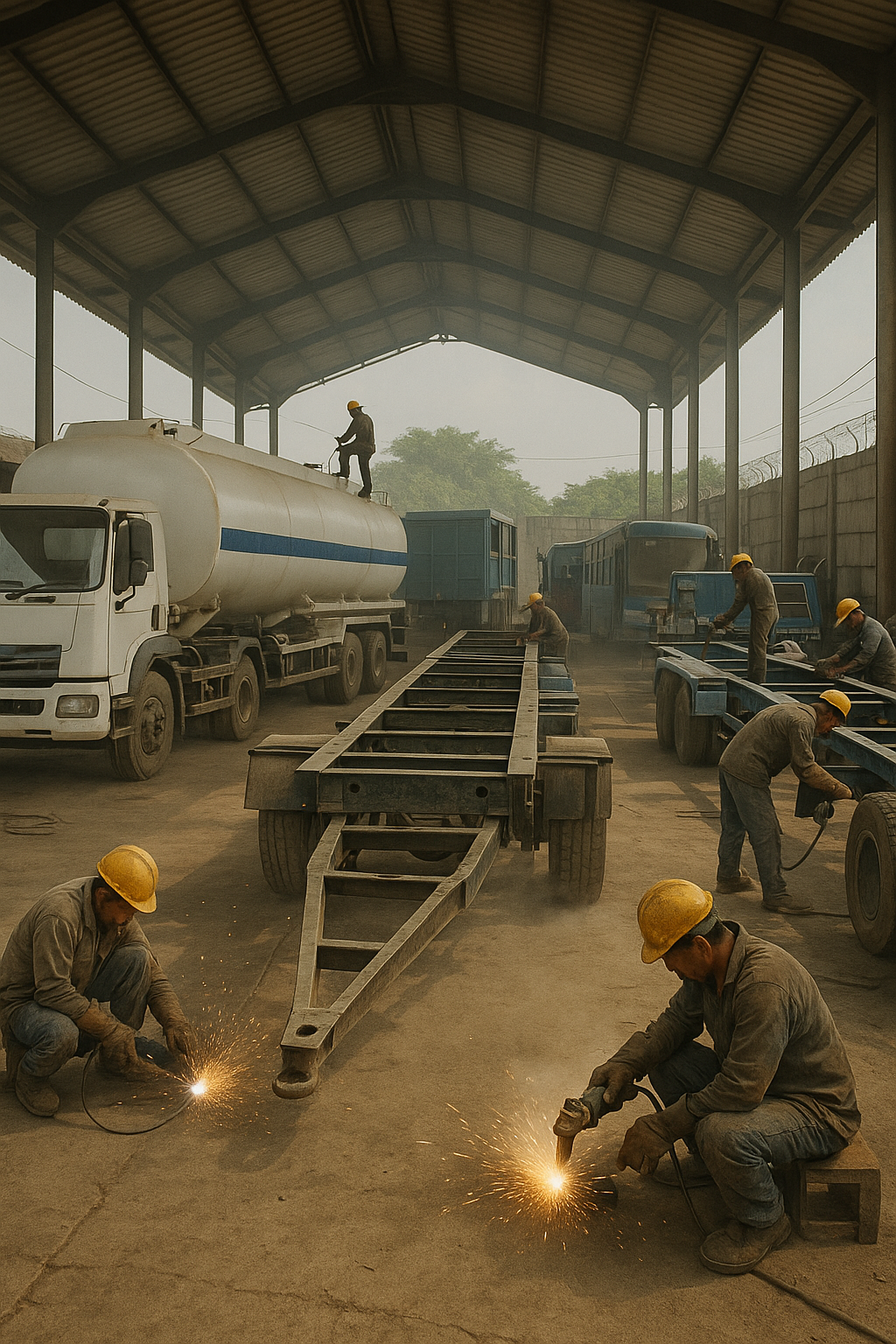 SUMO Karoseri melayani pembuatan trailer 20 feet dan 40 feet untuk kebutuhan angkutan logistik dan kontainer. Dibuat dengan rangka baja tebal, sistem pengelasan presisi, serta desain kuat dan tahan lama. Proses cepat, legalitas lengkap, dan siap kirim ke seluruh Indonesia.